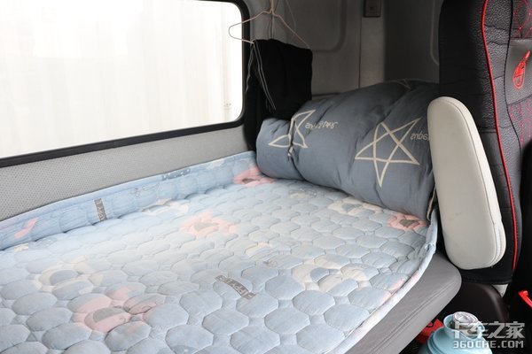 看完工作区,我们再来看一下休息区。这款车的卧铺非常的宽(小编亲身体验之后发自肺腑的说),由于车队派单没有具体时间,装卸货物打单据时间也都比较随机,所以在小编去的第一天下午,其实都是没什么事情可以做的,就只能等EMS的通知,这个时候套用李强大哥的话来说那就是“坐着不如躺着”,确实,小编躺在下卧铺怎么翻身都可以,真的很惬意。