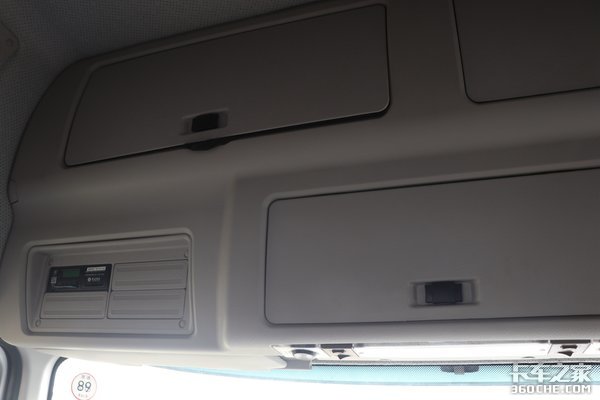 这款车在驾驶员头顶上方还设置了五个封闭式的储物空间,在下卧铺的下方也是一个非常大的储物柜,平常卡友们加油之后送的礼品卡兑换的方便面、红牛、自己带的泡菜什么的,都可以储藏在下卧铺的储物柜内,非常的方便。